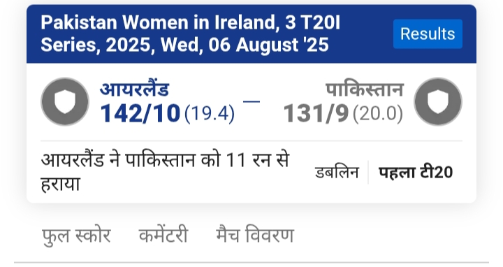 आयरलैंड महिला बनाम पाकिस्तान महिला के बीच मैच में कौन जीता है